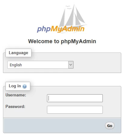 - Na strani, ki se bo odprla, se bo prikazalo okno, v katerem bosta vnesena uporabniško ime in geslo baze podatkov, do katere želijo dostopati, nato pa se pritisne gumb "Pojdi".