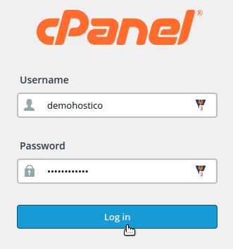 - Dostopali bomo do cPanel-a preko povezave, ki je navedena v administrativnem e-poštnem sporočilu za gostovanje, z uporabo uporabniškega imena in gesla iz istega e-poštnega sporočila.