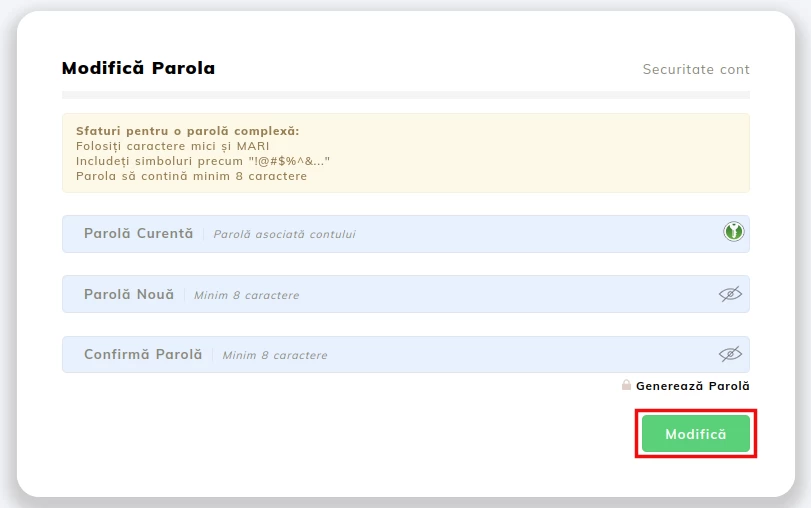 - Po vnosu gesla kliknite na gumb Spremeni.