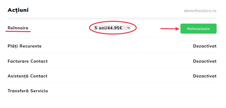 - Sprememba obračunskega obdobja je mogoča le, če je gostovanje ali domena aktivna in če v računu za obnovitev storitve ni bila ustvarjena nobena proforma faktura;