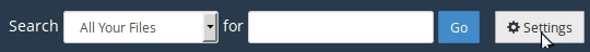 - Za aktivacijo seznama skritih datotek bomo kliknili na gumb Nastavitve v zgornjem desnem kotu vmesnika za upravljanje datotek.